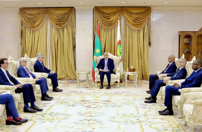 Le Président de la République, Mohamed Ould Cheikh El Ghazouani, a reçu lundi soir au Palais présidentiel une délégation de haut niveau de l’Union européenne, conduite par le Commissaire chargé des affaires intérieures et de la migration, Magnus Brunner.